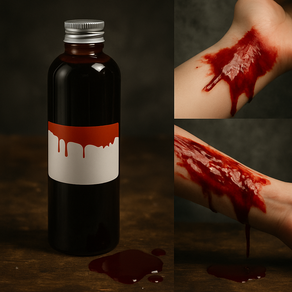 Das Blut lässt sich einfach mit Wasser abwaschen und ist sanft zur Haut , ideal für den sicheren Einsatz bei Events, Fotoshootings oder Filmsets.
