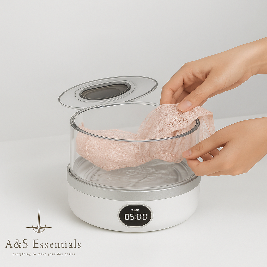 Die Ultraschall-Technologie entfernt zuverlässig Schmutz und Flecken, ohne deine empfindlichen Stoffe zu beschädigen. Perfekt für Unterwäsche, Babybekleidung und andere Delikates.
