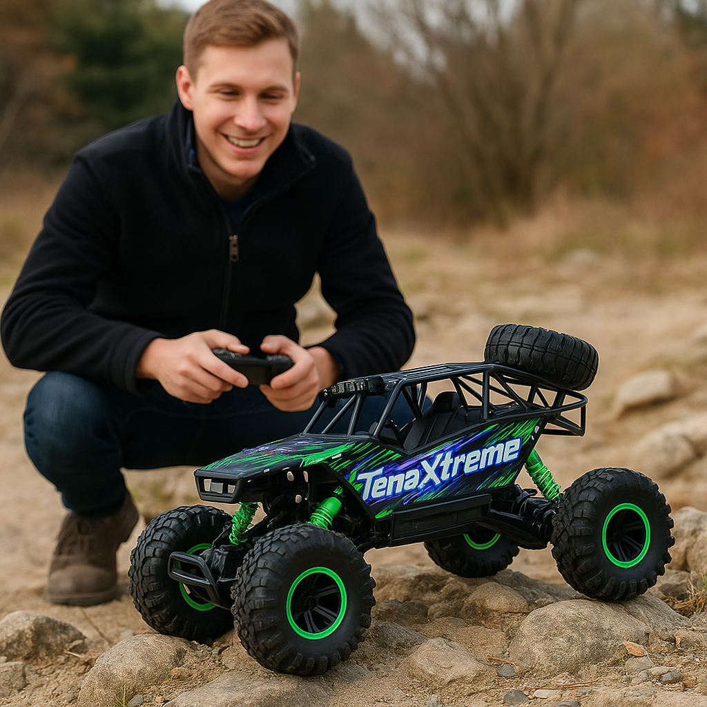 Dank stabiler Federung und hochwertigem Chassis hält das RC Auto selbst härtesten Fahrten stand. Perfekt für Outdoor-Abenteuer und extreme Stunts.
